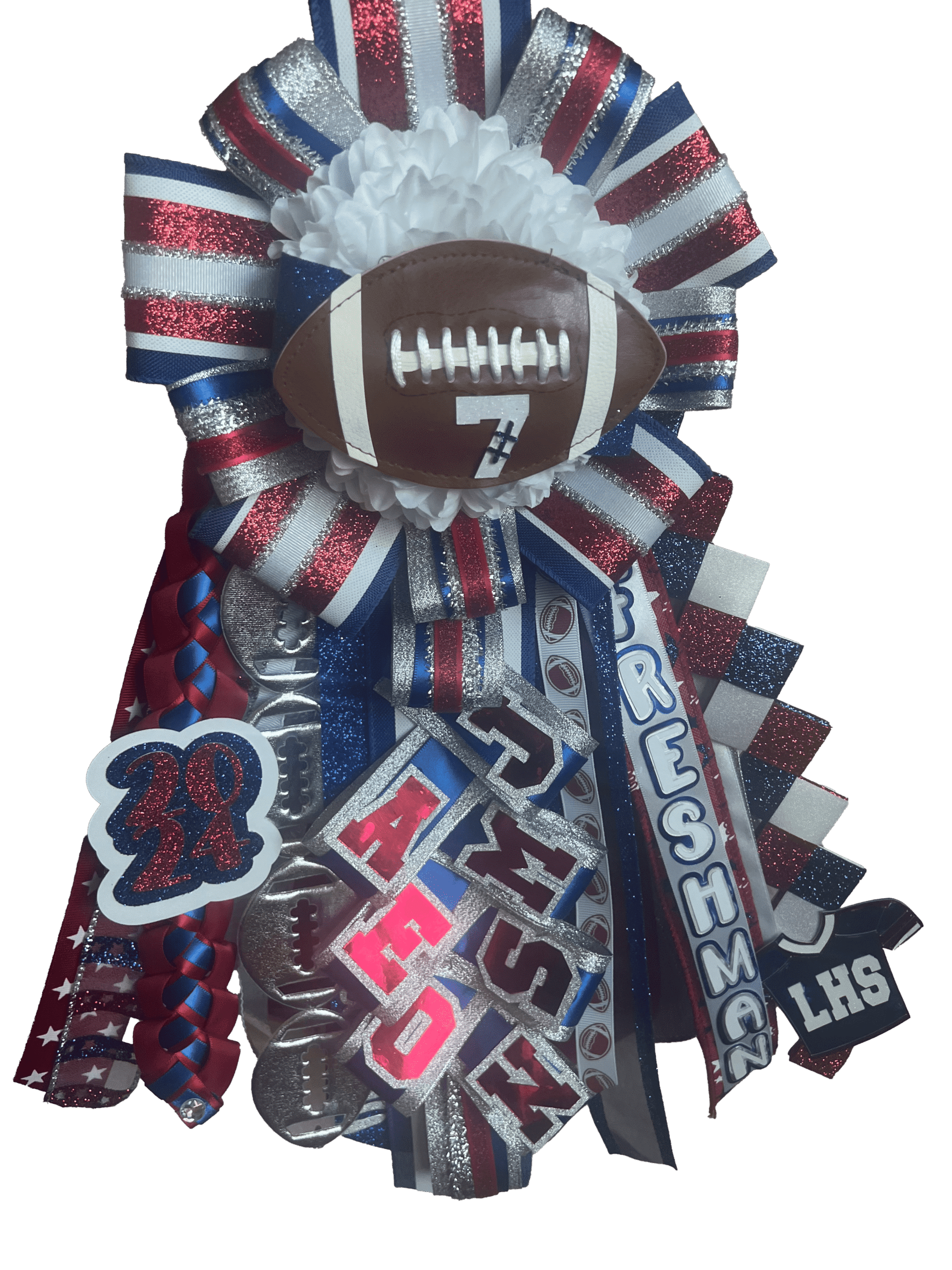 Hannah’s creativity blew me away! The details on this mum were stunning — from the sparkle and school spirit to the perfect personalization with Caroline’s name and team logo. It was exactly what we envisioned and more. Truly a keepsake for Homecoming 2024!
